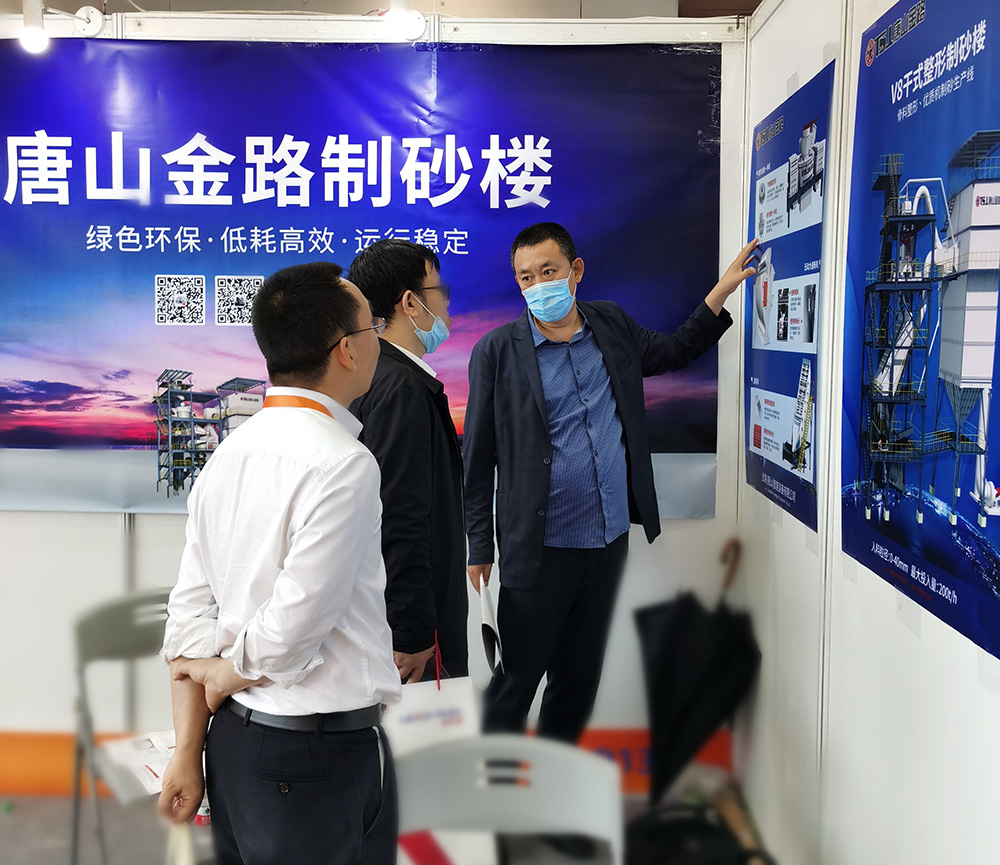 作為機制砂機械設備領域的相關企業(yè),唐山金路以機械設備提供商的身份亮相此次展會,展出展品為V8干式整形制砂樓、V9干式制砂樓、高頻篩、無動力選粉機、機制砂選粉機等。每樣設備皆是唐山金路數(shù)年研究的成果,設備產出的機制砂粒形圓潤、級配合理,是制砂生產企業(yè)的理想產品。
