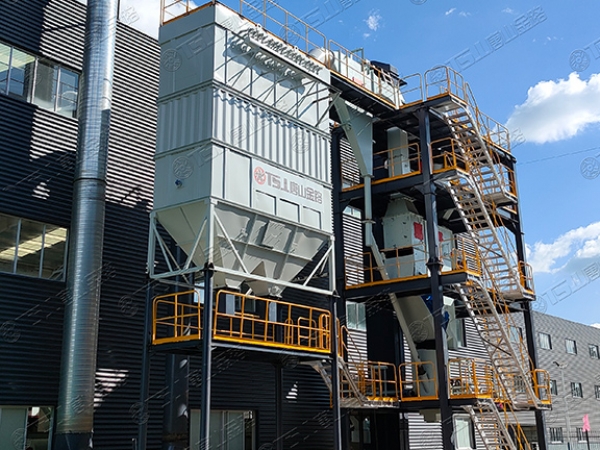 原料經(jīng)過(guò)電子秤進(jìn)入到皮帶輸送機(jī)中,由全封閉的提升機(jī)將物料入到特種砂漿制砂機(jī)內(nèi)進(jìn)行破碎處理,再由空氣篩對(duì)破碎后的物料進(jìn)行篩分、選粉處理,篩分后的較大物料會(huì)返回特種砂漿制砂機(jī)中進(jìn)行二次破碎,符合要求的砂子則由傳送帶輸送至成品倉(cāng)中;篩分過(guò)程中的粉塵會(huì)經(jīng)粗細(xì)粉分離機(jī)進(jìn)入到布袋收塵器內(nèi),而其中較大的粗顆粒會(huì)在粗細(xì)粉分離機(jī)的作用下,按需求在成品砂中進(jìn)行回?fù)?,?xì)粉塵將通過(guò)風(fēng)力進(jìn)入到布袋收塵器,作為副產(chǎn)品進(jìn)行使用。