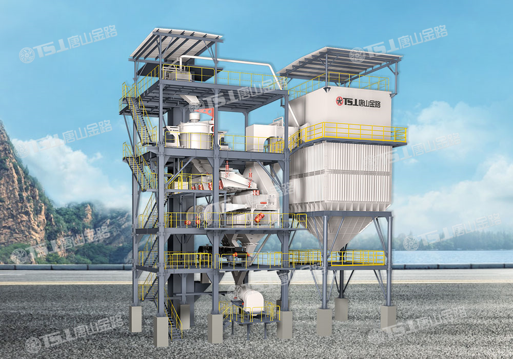 唐山金路V9干式制砂樓主要用于高品質(zhì)機(jī)制砂的生產(chǎn)中,由五孔碾磨制砂機(jī)、空氣篩、粗細(xì)粉分離機(jī)、加濕拌合機(jī)等設(shè)備組成。